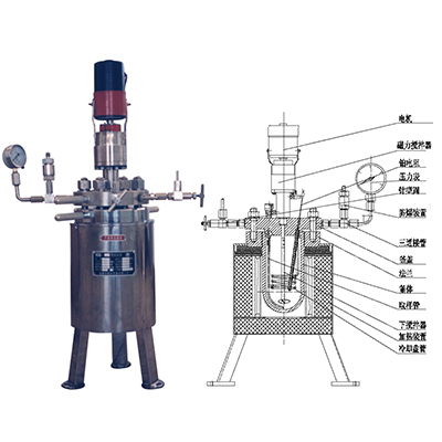 GSA型反應釜采用端面稀土耦合驅動器,具有靜密封、無泄漏的特點。釜體材料主要采用1Cr18Ni9Ti 不銹鋼,并可根據不同介質要求制作316L不銹鋼、鈦材(TA2)、鎳材、鉭材、鋯材、哈氏合金、內襯聚四氟乙烯等特殊材質。攪拌軸承采用耐腐蝕不銹鋼軸承,適合高轉速、加氫催化,低粘度物料的攪拌,攪拌槳采用推進式攪拌漿。加熱方式一般為干式電加熱,也可根據用戶要求制作電加熱導熱油加熱或夾套加熱。帶有多功能控溫、控壓數顯控制箱。加熱控制系統(tǒng)采用PID自動溫度控制儀表,溫度控制十分準確。 儀表經整定后,可有效減輕溫度過沖。出料方式有上出料和下出料兩種,供用戶訂貨時選用。該系列產品具有運轉平穩(wěn)、噪音小、操作方便等特點,是用戶進行各種化學反應試驗的理想裝置。