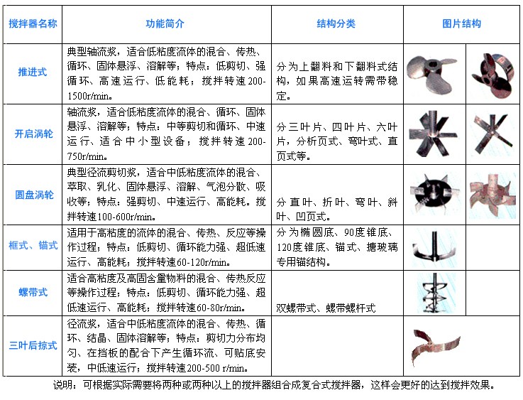 攪拌器主要參數(shù)及尺寸(僅供參考):